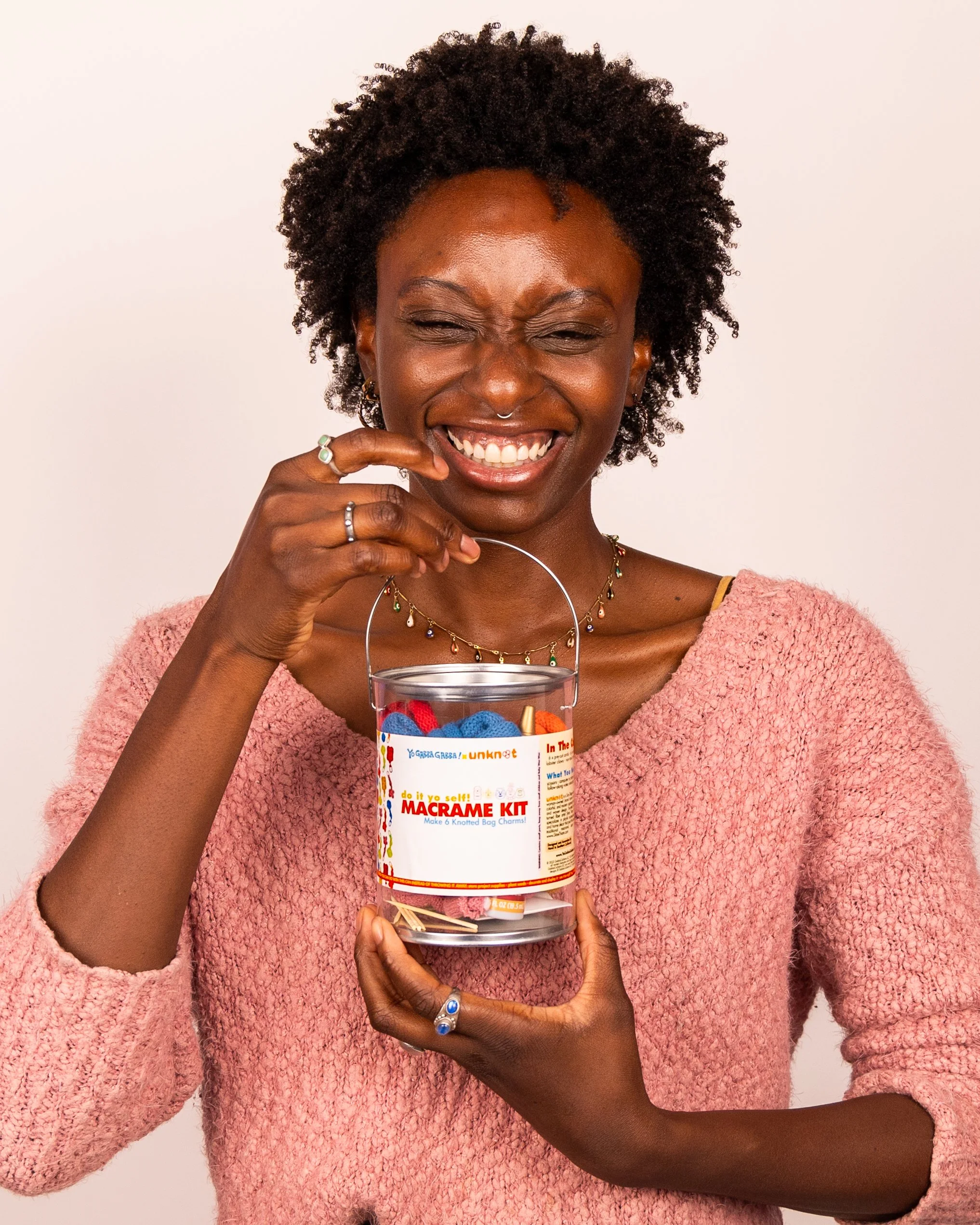 Fun, colorful, beginner friendly macrame kits assembled from Unknot studio scraps.